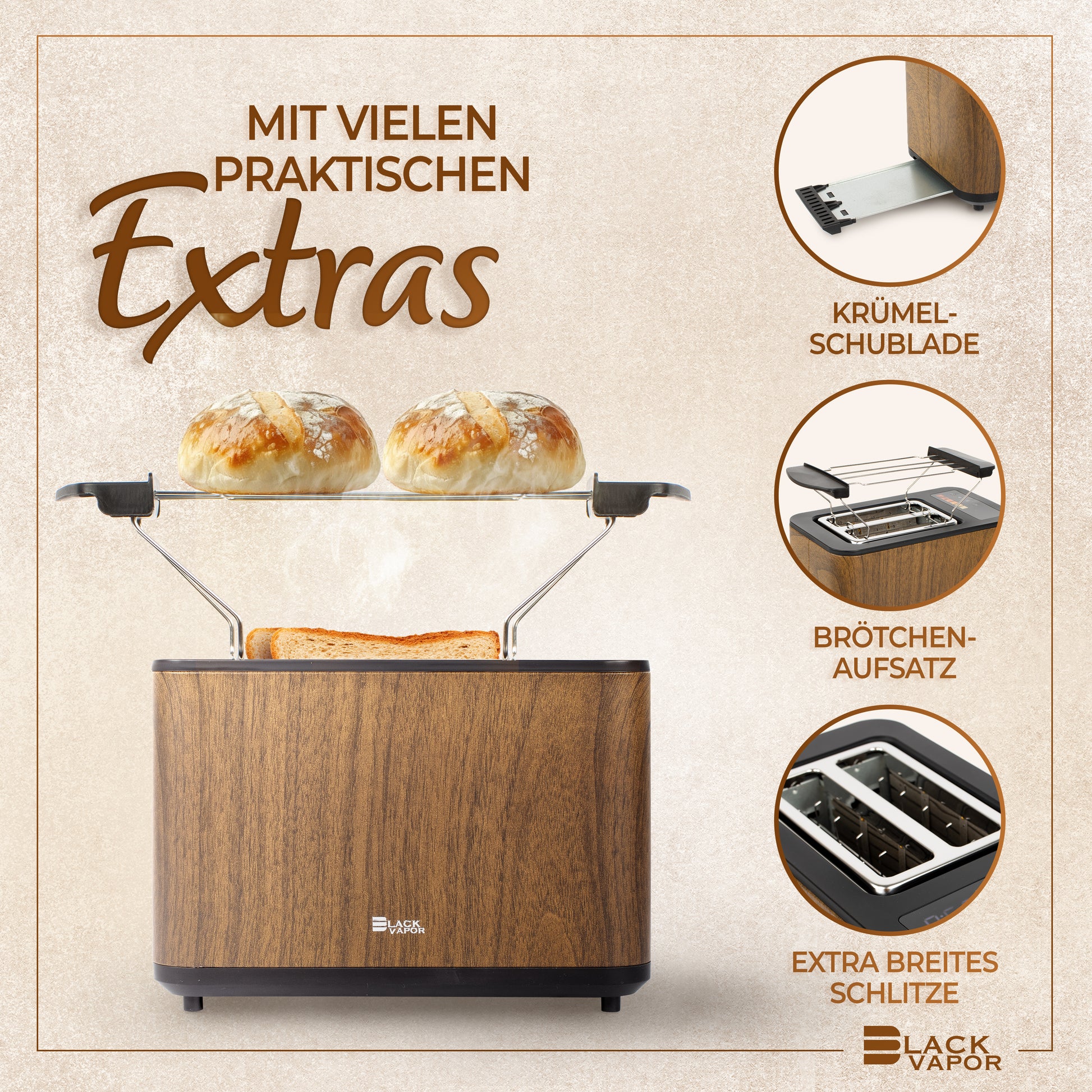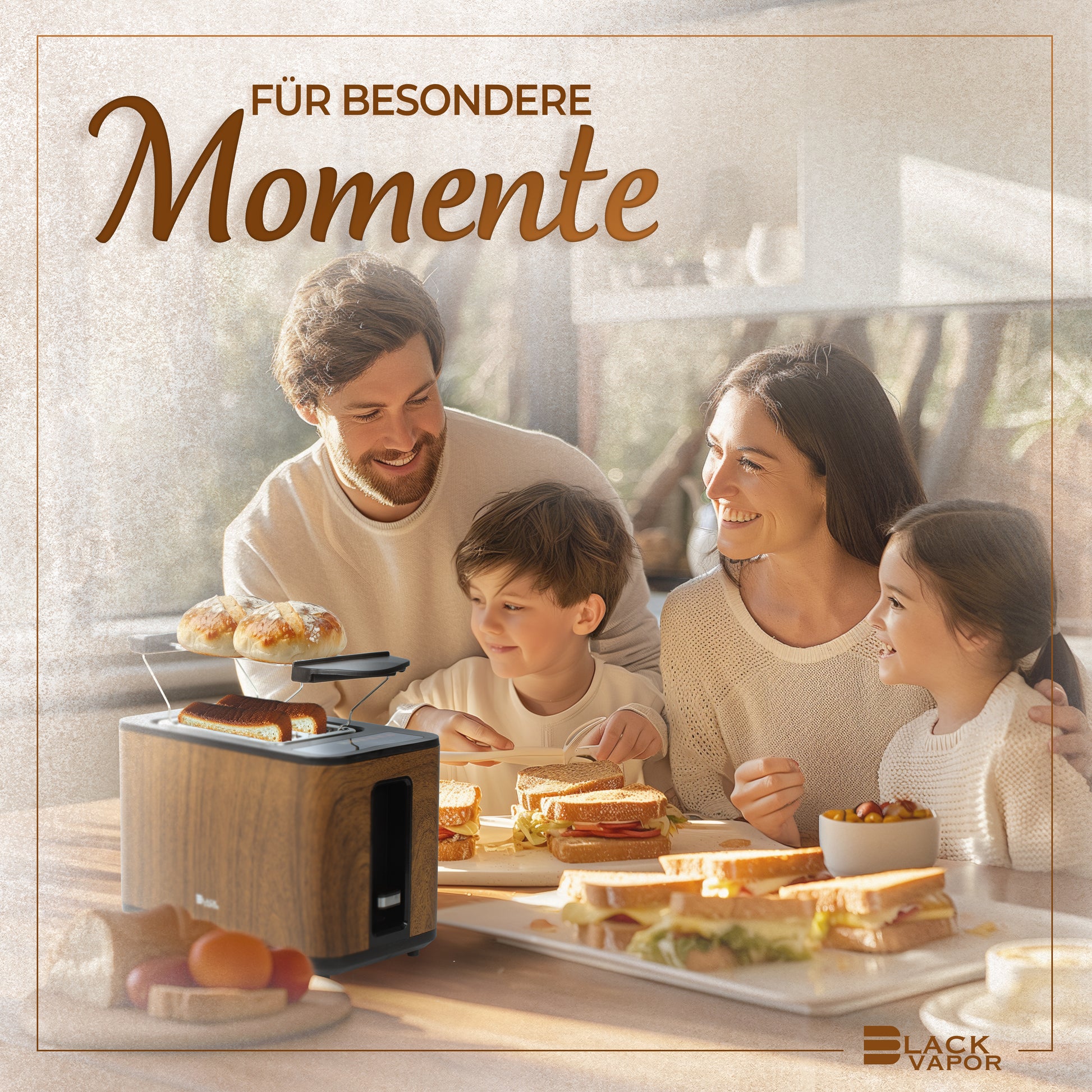 The elegant wooden look of the toaster blends harmoniously into any kitchen decor and gives your home a stylish and natural touch.